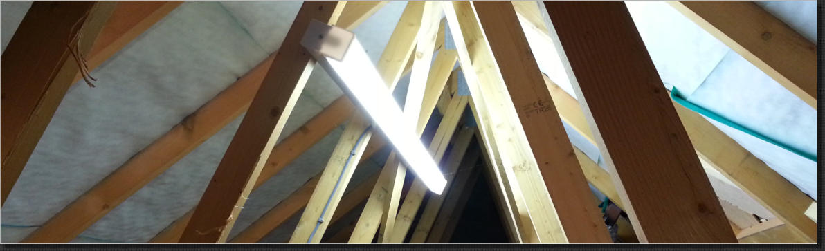 Lighting is crucial to using your loft space - as you can see from our pictures, it transforms it from a dark and mysterious place to a usable storage area where you can see everything and so you know what you’ve got. Life suddenly becomes a whole lot easier.  Battery loft lights (350 lumens) - and we don’t fit them! We can’t advise enough against these, in our opinion they just are no good for the job:  •	It would be just typical that when you need to use it the three 1.5v batteries are flat.  •	To switch them on there is a  pull cord, but the light needs to be positioned high up in the roof for maximum spread - how are you going to find the pull cord in the pitch black? (Dont say get a torch…) •	The output is so low at 350 lumens it just won’t light anything, especially not a large black loft (Think small torch). The output is supposed to be the same as a 32watt bulb - a 40w bulb is the dimmest you can buy, and a 100w bulb is the least you could light a small loft with. Our 5ft LED batten lights put out 5200 lumens, nearly 15 times as much light.  LED strip light £120 (5200 lumens!) The unbelievably bright twin LED 5ft LED light makes the loft much lighter and brighter than you’d expect. This is because in the loft, the roof (usually black) doesn’t reflect any light back down like a normal room and so the area of the light source is that much more important. Hence the long LED light with its larger area makes your loft much brighter. In the past when we did boarding and installing a light we do the strip light first as it gives us a much better environment in which to work!  All of these light switches - not installed by us- are too far from the hatch and are very difficult to find in the dark. All of our light switches are right next to the loft opening and immediately obvious.  *SFB = Seriously Flipping Bright