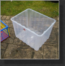 round box is Ikea 45L SAMLA with lid at around £7. Not too expensive, stacks